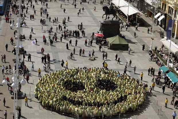 reuniram nesta sexta-feira (6) em uma praça em Zagreb, na Croácia. Os