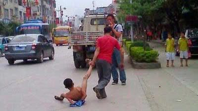 cidade de Hechi (China). O pai ficou sabendo, foi até o local e resolveu punir Xiaomeng, de 14 anos.